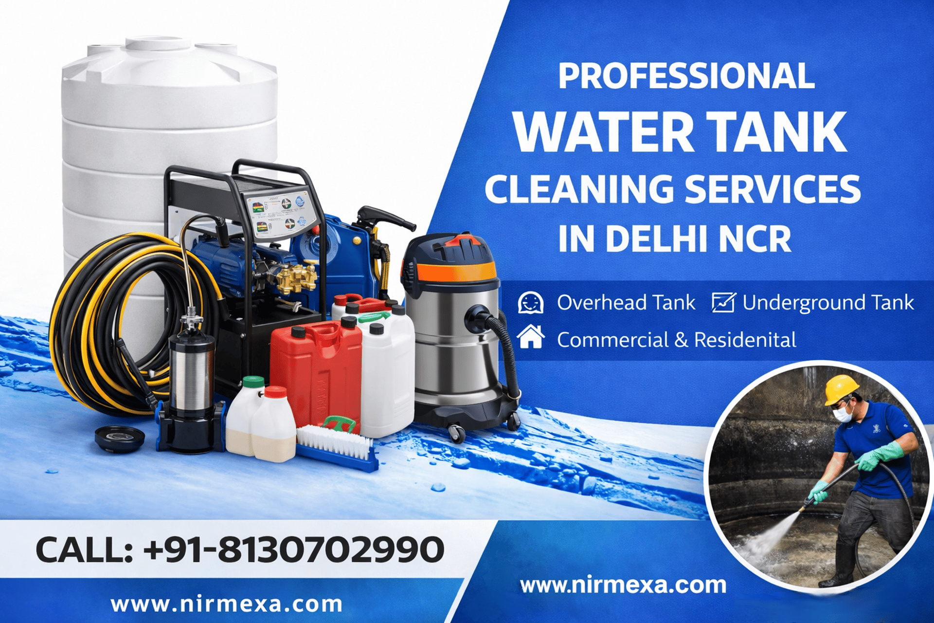 📞 Contact Us Now at +91-8130702990 for the best water tank cleaning services in New Delhi NCR.